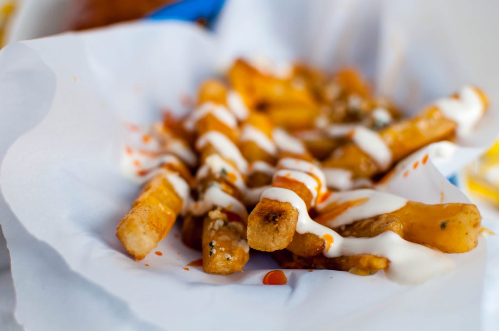 Crispy fries topped with buffalo sauce, bleu cheese and ranch. Perfect for game day.