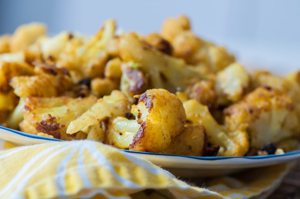 My favorite way to eat cauliflower is roasted. It gets brown and crispy in the oven which brings out its sweetness. I always simply toss it with olive oil, salt and pepper but while I was looking for some interesting Indian recipes to try, I came across this spiced cauliflower that looked too good not to try.