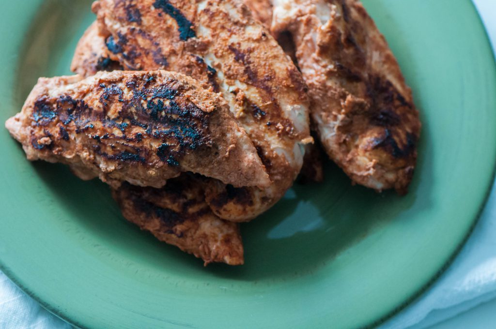Tandoori chicken is marinated in yogurt and a combination of spices including paprika, coriander, cumin, garam masala and cayenne. Traditionally, it’s cooked in a cylindrical clay oven called a tandoor. I obviously don’t have access to one of those (though it would be awesome) so these tenders are grilled instead.