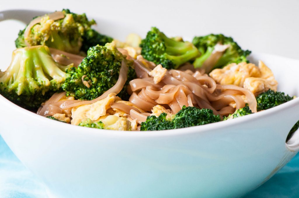If you don’t frequent Thai restaurants you may not have heard of Pad Sew Ew. I know I hadn’t until a few years ago. Rice noodles are stir fried with eggs, broccoli, soy sauce and oyster sauce to create a simple yet delicious dish. Traditionally, there is chicken or pork which you can add if you choose but I decided to skip them to keep it on the lighter side.