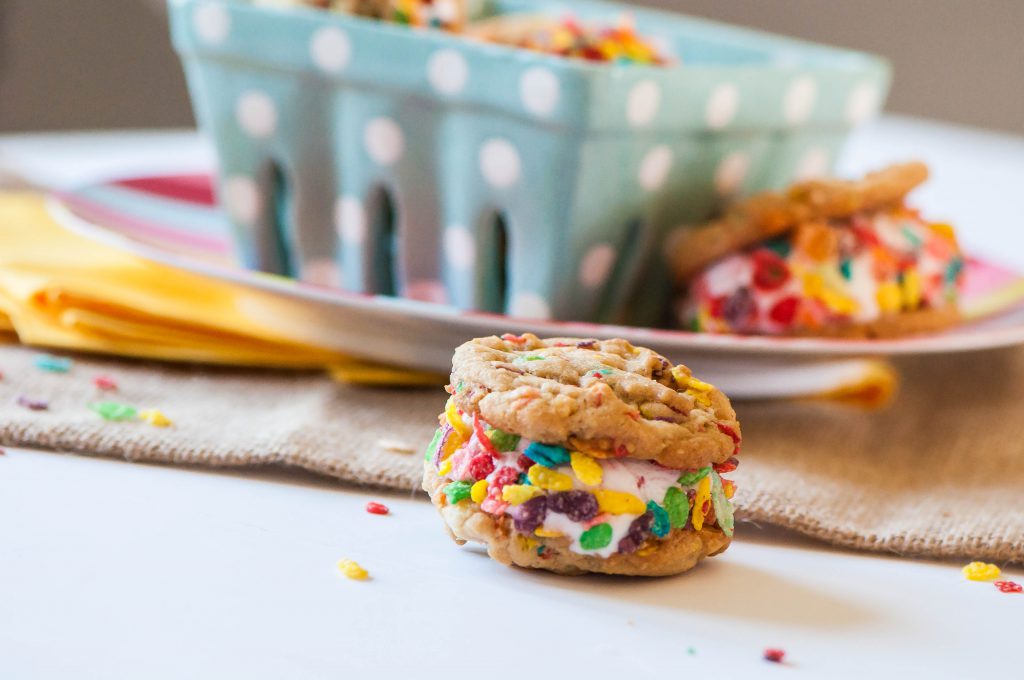 Fruity Pebbles Cookie Ice Cream Sandwiches