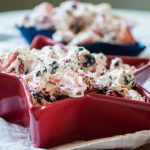 I also love a good theme so planning and creating some fun red, white and blue dishes each year is always part of the 4th of July fun. I have a couple recipes I’m sharing this year involving berries that I’m pretty sure you are going to love and first up today is this Patriotic Cheesecake Fruit Salad.