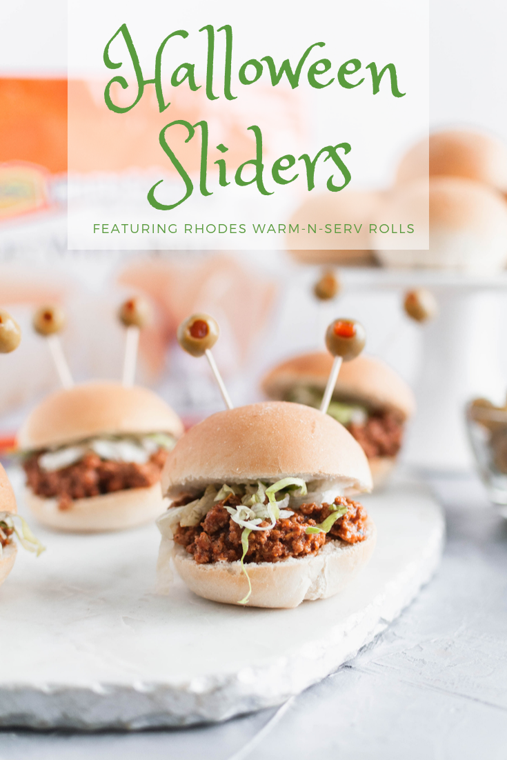 I’m teaming up again with Rhodes Bake-N-Serv to bring you this super fun Halloween recipe. How cute are these Halloween sliders using their Warm-N-Serv rolls?!